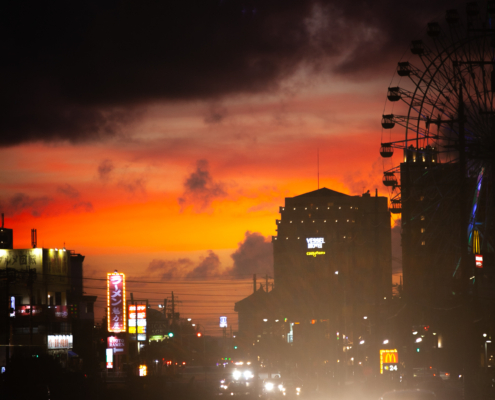 석양이 아름다운 아메리칸 빌리지 「미하마 차탄」