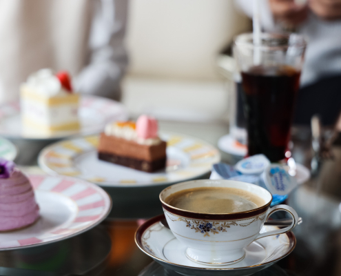 (조각 케익 600엔 전후/음료 600엔~1,000엔)