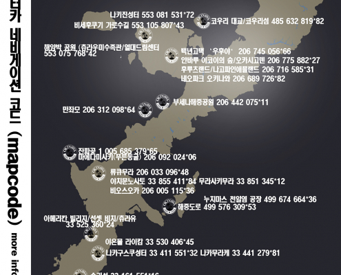 Map code라는 것은 네비게이션에 번호를 넣고 가고 싶은 장소를 쉽게 검색하는 코드 인데 오키나와 주요 관광지 맵코드도 첨부해 드립니다. 다만, Mapcode로 검색이 안되는 지역이 많아, 주요 관광지만 참고 하시기를 바랍니다. (안내 드리는 mapcode는 모두 정확히 안내가 되는 관광지 입니다)
