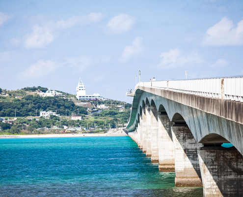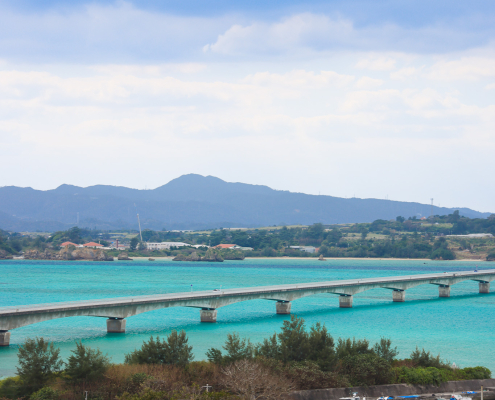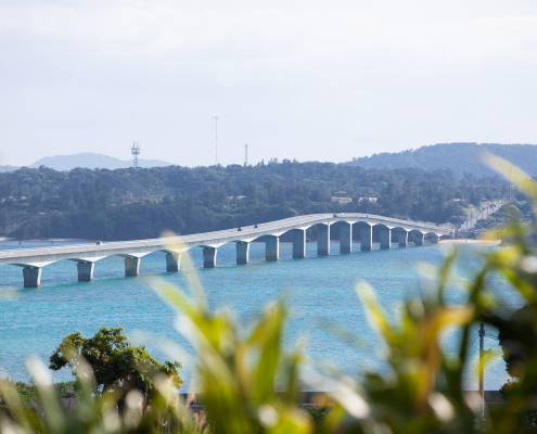옥상에서 코우리 대교가 한눈에 보이는 전망을 감사 하실 수 있습니다