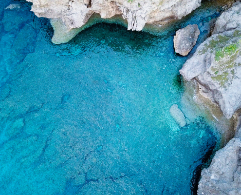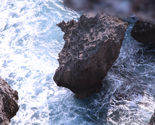 절벽 아래의 바다로 바닥까지 보이는 순수함. 파도에 깎여 내려간 바위 사이로 물 거품이 일어나면 한참을 바라봐도 지겹지가 않습니다