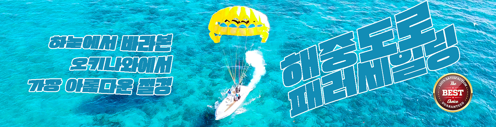 안전성, 가격, 경관의 아름다움을 우선적으로 고려하여 오키나와 에세이만의 패러세일링 상품을 예약 받고 있습니다