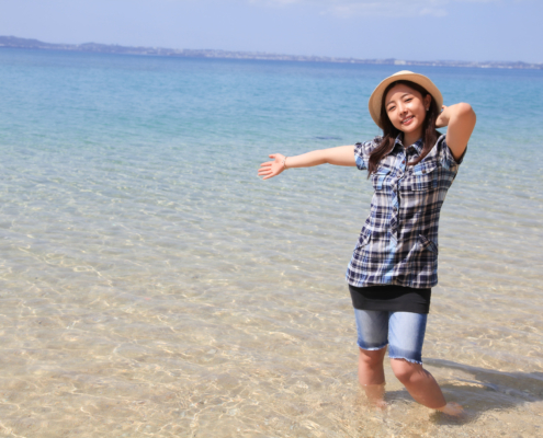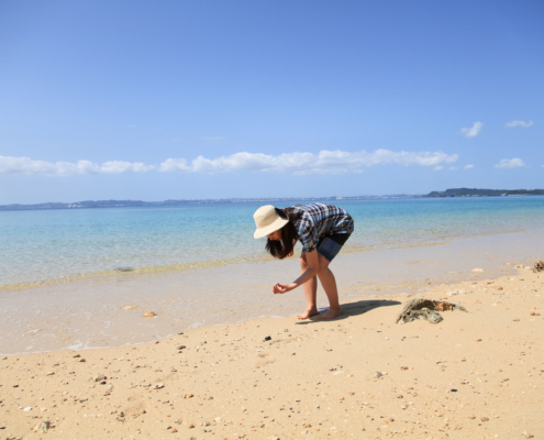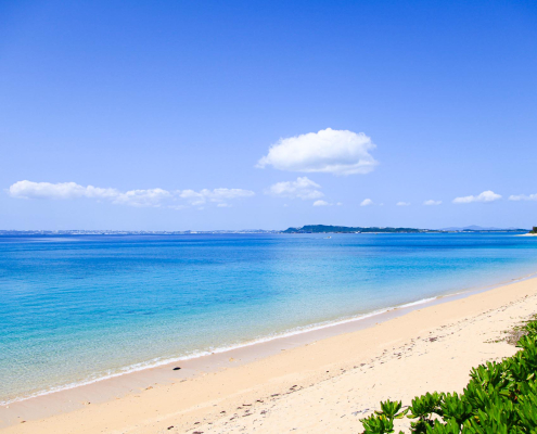 끝 없이 펼쳐진 허리 정도도 오지 않을 것 같은 에메럴드 바다, 4월 부터 스노클링 등 마린 스프츠도 가능 하니 오키나와 방문 시에 꼭 들러 보시기를 바랍니다. 렌터카 운전으로 지치신 여독을 이곳에서 다 푸실 수 있을 거예요.