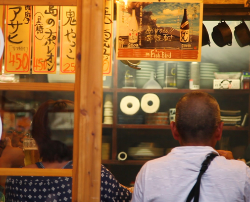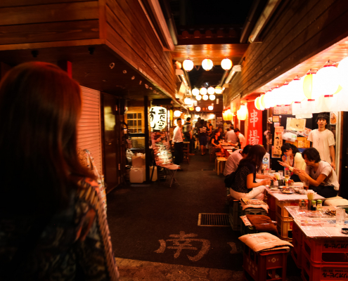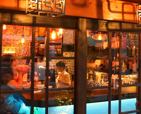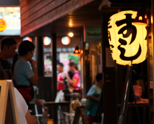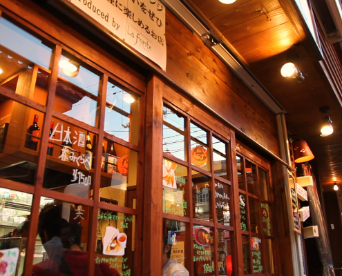 현재 총 21개의 각종 레스토랑과 술집이 모여 일본스러운 분위기를 만들고 있으며, 야외 좌석 등에 앉아